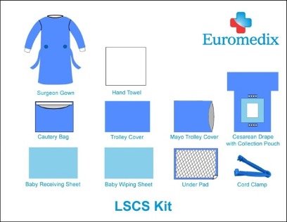 • Includes Surgeon gowns, Hand Towels, Baby Receiving & Wiping Sheets, Caesarean Drape, Underpads, Trolley Cover, Cautery Bag, Cord Clamp etc.